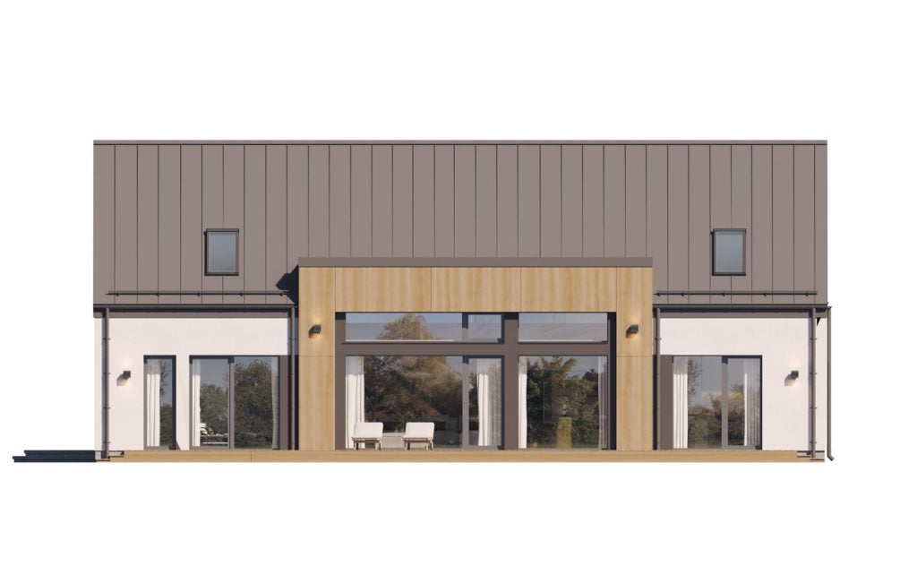 Atuty projektu: ✓ Funkcjonalny układ dla rodziny 4-6 osobowej ✓ Liczne przeszklenia zapewniające kontakt z naturą ✓ Nowoczesna architektura w stylu stodoły ✓ Energooszczędne rozwiązania (rekuperacja) ✓ Przestronny taras idealny do relaksu