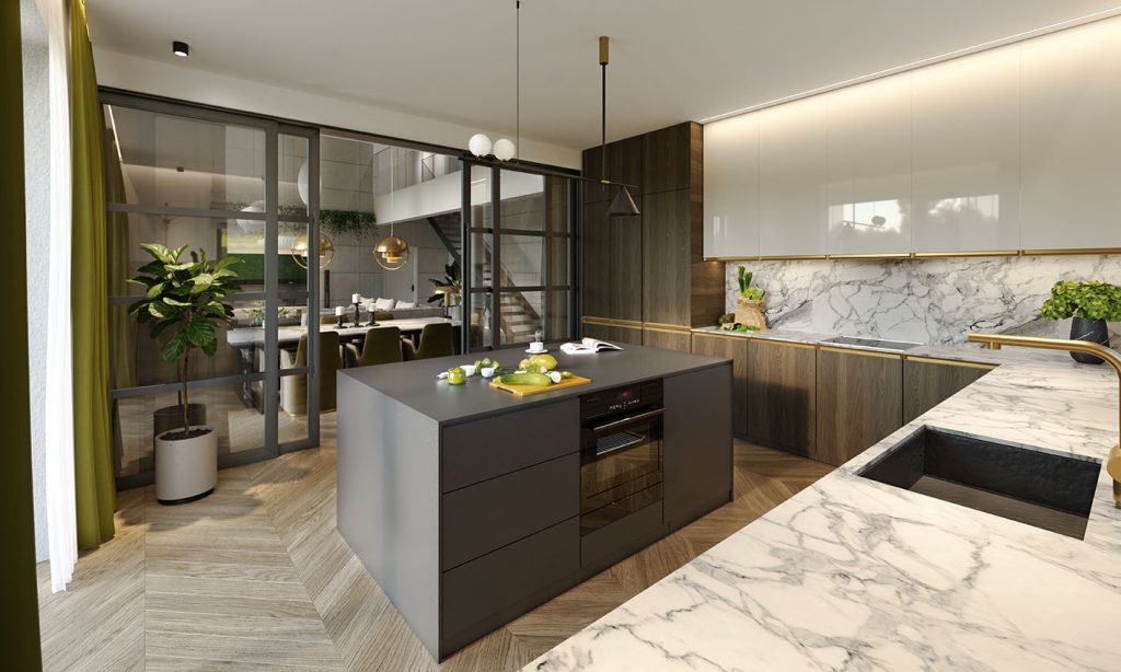 - Strefa dzienna: przestronny salon połączony z jadalnią, funkcjonalna kuchnia (z możliwością zamknięcia) oraz spiżarnia
